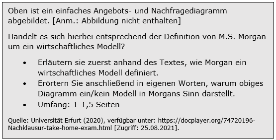 | Was? | Ein Take-Home Exam ist eine Prüfung, welche in einem bestimmten Zeitrahmen ortsungebunden durchgeführt wird. Studierende haben die Aufgabe, unter Einbezug von LV-Mitschriften, bisherigen Assignments und externen Quellen, Prüfungsfragen zu beantworten, die in ihrem Ausmaß über die von Closed-Book Exams hinausgehen. Das Bearbeitungszeitfenster kann über wenige Stunden bis hin zu mehreren Tagen dauern (z. B. beträgt der Zeitrahmen für eine zweistündige Prüfung in etwa 6-48 Stunden). |
